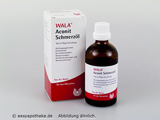 Das Aconit Schmerzöl hilft bei  Nervenschmerzen und rheumatischen Gelenkerkrankungen. Die ausgewogene Komposition aus potenziertem Eisenhut, Kampfer und Lavendel stärkt den lokalen Wärmeorganismus, wirkt schmerzlindernd und krampflösend. Der wohltuende Duft des Lavendels nimmt ein erstes Stück Anspannung. Eisenhut ist ein bewährtes Nervenmittel, welches Muskelschmerzen und Neuralgien mildert. Der echte Kampfer regt die lokale Durchblutung an und wirkt schmerzlindernd. Das gut in die Haut einziehende Wala Aconit Schmerzöl wird an den betroffenen Stellen eingerieben.
