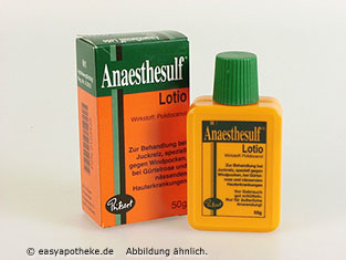 Die Anaesthesulf Lotio wird zur äußerlichen Behandlung von Gürtelrose, Juckreiz und anderen Infektionen der Haut angewendet. Die Lotion enthält unter anderem den Wirkstoff Polidocanol. Durch die örtlich betäubenden Eigenschaften der Lotion, ist sie in der Lage Juckreiz und Schmerzen bei Hautinfektionen zu lindern. Die Lotion sorgt gleichzeitig für eine angenehme Kühlung der Haut. Die Anaesthesulf Lotio können auch Schmerzen und Entzündungen an Zahnfleisch, Lippen und Mundschleimhaut behandelt werden.