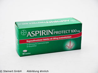 Die Aspirin Protect 100 mg Tabletten koennen bei einer regelmaessigen Einnahme Herzinfarkten und Schlaganfaellen vorbeugen. Die Tabletten enthalten den Wirkstoff Acetylsalicylsaeure in einer Dosierung von 100 mg pro Tablette. Durch Bluthochdruck, einem erhoehten Cholesterinspiegel oder eine ungesunde Lebensweise erhoeht sich das Risiko fuer Herz-Kreislauf-Erkrankungen. Der Wirkstoff sorgt dafuer, dass das Blut duenfluessig gehalten wird und so die Blutplaettchen nicht verklumpen, wodurch das Risiko einer Gefaessverstopfung gemindert wird. Die Aspirin Protect 100 mg Tabletten sind mit einer speziellen Schicht ueberzoegen, wodurch sie sich erst im Darm aufloesen und so den Magen nicht schaedigen.