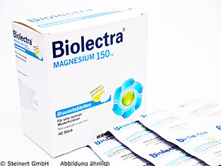 Die Biolectra Magnesium Brausetabletten werden zum Ausgleich eines Magnesium-Mangels angewendet. Die Brausetabletten enthalten den Wirkstoff Magnesiumoxid in der Stärke 150 mg pro Brausetablette. Magnesium ist unter anderem wichtig für den Aufbau von Knochen und Zähnen, ermöglicht grundlegende Stoffwechselvorgänge und beeinflusst gleichzeitig Nervenreize und Muskelbewegungen. Zu einem Mangel an Magnesium kann es zum Beispiel durch eine Mangelernährung oder einer Aufnahmestörung kommen. Magnesium hilft bei Störungen der Muskelfunktion, verbessert die Funktion des Herzmuskels und entspannt die Blutgefäße. Die Biolectra Magnesium Brausetabletten sind in der Lage die typischen Beschwerden, wie Muskelkrämpfe, Verspannungen, Migräne, Blutdruckanstieg und Verstopfungen zu lindern.