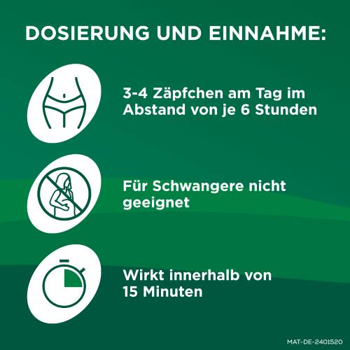 Höchstdosis: Eine Dosis von 4 Zäpfchen pro Tag sollte nicht überschritten werden.
