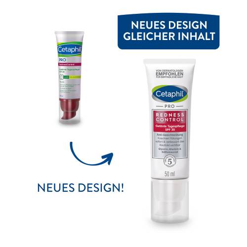 Die getönte Tagespflege ist Teil der dermatologischen Cetaphil PRO RednessControl Pflegeserie, die gezielt zur Behandlung von Symptomen der Rosazea (Gesichtsrötung, Juckreiz, stechende, brennende Haut) entwickelt wurde. Die getönte Tagespflege schützt empfindliche Rosazea-Haut mit Lichtschutzfaktor 30 vor UV-bedingter Gesichtsrötung. Die neutrale Tönung gleicht den Hautton aus und kaschiert Rötungen sofort. Gleichzeitig wird die trockene Haut sanft gepflegt und mit Allantoin und Süßholzwurzelextrakt beruhigt.
