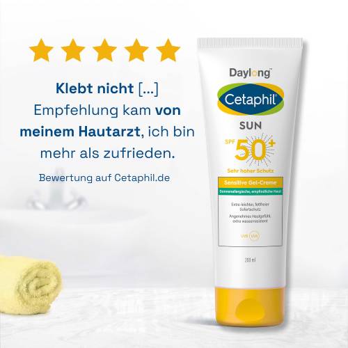 Das Cetaphil Sun Daylong SPF 50+ Sensitive Gel-Creme ist dank der fett- und emulgatorfreien Formulierung speziell für fettige, allergische und besonders sonnenempfindliche Haut, sowie Anwender, die zu Sonnenallergie oder Mallorca Akne neigen, geeignet.  Auf Konservierungsstoffe, Parfüm und Emulgatoren wird verzichtet. Die Hautverträglichkeit von Cetaphil Sun Daylong wurde dermatologisch bestätigt. Wenn Sie gerne auf hochwirksamen, zuverlässigen und besonders verträglichen Sonnenschutz vertrauen, sind die Cetaphil Sun Daylong SPF 50+ Sensitive Gel-Cremes die richtige Wahl.