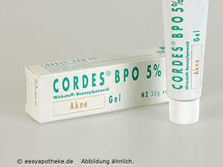 Das Cordes BPO 5% Gel wird zur äußerlichen Behandlung von Akne angewendet. Das Gel enthält den Wirkstoff Benzoylperoxid. Der Wirkstoff Benzoylperoxid vermindert mit seiner leichten Schälwirkung die Verstopfung der Talgdrüsen Ausführungsgänge. Im Vordergrund stehen jedoch die antimikrobiellen Eigenschaften, durch die die Bakterienbesiedelung und damit die Neubildung der Pickel gehemmt werden. Das Cordes BPO 5% Gel verringert das Bakterienwachstum und mindert so Bakterien und Mitesser.