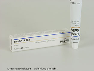 Die Desitin Salbe wird zur Behandlung und Pflege von oberflächlichen Verletzungen der Haut angewendet. Die Salbe enthält eine Kombination der beiden Wirkstoffe Zinkoxid und Lebertran. Lebertran sorgt für eine Aufweichung von Krusten und Schuppen und das Zinkoxid verfügt über zusammenziehende Eigenschaften, wodurch es zu einer Abdichtung von verwundeten Hautbereichen und Blutgefäßen kommt. Wundabsonderungen werden vermindert und nässende Stellen trocknen aus. Gleichzeitig  werden die Mikroorganismen durch die Aufnahme von Zink-Ionen inaktiviert. Die Desitin Salbe fördert den Heilungsprozess geschädigter Haut und bietet einen gewissen Hautschutz.