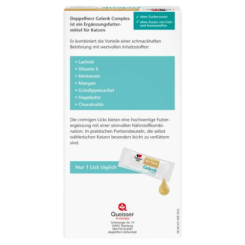 Doppelherz für Tiere Gelenk Complex ist ein Ergänzungsfuttermittel für Katzen. Die cremigen Licks enthalten optimal kombinierte Inhaltsstoffe. Ohne Zusatz von Zucker, Farb- und künstlichen Aromastoffen.