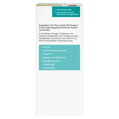 Doppelherz für Tiere Gelenk Öl ist ein Ergänzungsfuttermittel für Katzen und Hunde. Die hochwertige Ölmischung enthält wertvolle Feststoffe, ohne Zusatz von Zucker, Farb- und Konservierungsstoffen.