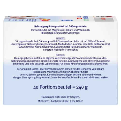 • 350 mg Magnesium + 300 mg Kalium pro Portionsbeutel