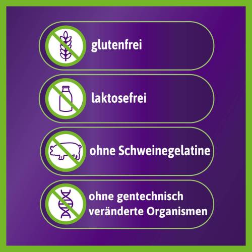 - FREI VON: ohne gentechnisch veränderte Organismen, Glutenfrei, Laktosefrei, Ohne Schweinegelatine