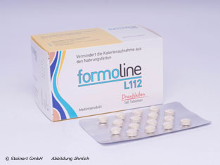 Die Formoline L112 dranbleiben Tabletten werden zur unterstuetzenden Behandlung von Uebergewicht und  zur Gewichtskontrolle angewendet. Die Tabletten enthalten D-Glucosamin aus dem Krebstierpanzer. Durch den Wirkstoff wird die Cholesterinaufnahme aus der Nahrung deutlich gemindert. Das Glucosamin ist in der Lage aktiv Fett-Kalorien aus der Nahrung zu binden. Nach der Aufnahme wird der Wirkstoff zusammen mit dem gebundenen Fett auf natuerlichem Wege ausgeschieden, wodurch sich die Fettaufnahme aus dem Darm in den Koerper deutlich reduziert.  Die Formoline L112 dranbleiben Tabletten sorgen zusaetzlich durch die aufquellenden Faserstoffe fuer ein langanhaltendes Saettigungsgefuehl.
