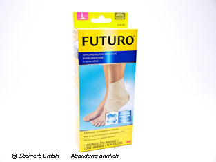 Die Futuro Sprunggelenk Bandage Gr. L wird zur Stabilisierung und zum Schutz der Gelenke angewendet. Die Bandage ist aus einem besonders atmungsaktiven und hoch elastischen Material. Durch die Bandage wird Wiederverletzungen vorgebeugt und die Gelenke vor Überbelastungen geschützt. Das Texilgewebe ist luftdurchlässig und hautfreundlich und bietet einen hohen Tragekomfort. Durch einen hochelastischen Gurt kann der Stützeffekt individuell eingestellt werden und gewährleistet einen optimalen Sitz. Die Futuro Sprunggelenk BandageGr. L kann sowohl am linken als auch am rechten Fuß getragen werden.
