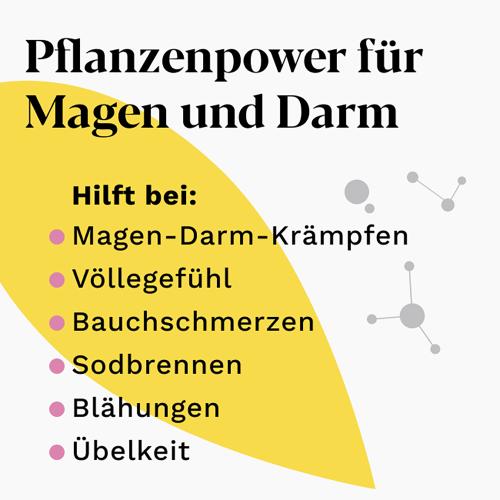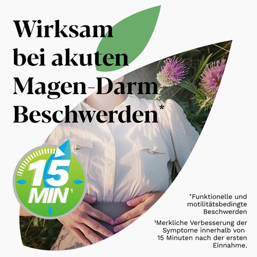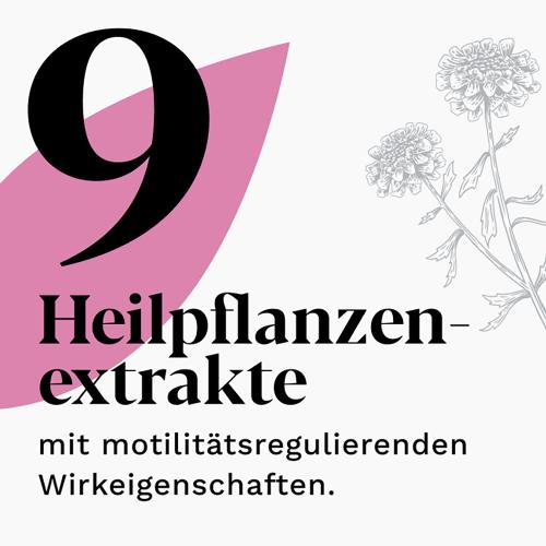 · einzigartige Kombination aus 9 Heilpflanzenextrakten mit einem höheren Anteil an Extrakten mit motilitätsregulierenden Wirkeigenschaften