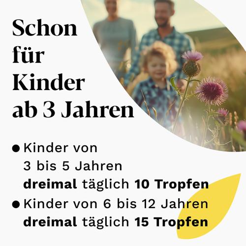 · Kinder zwischen 6 und 12 Jahren nehmen jeweils 15 Tropfen ein.