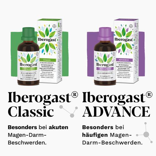 Iberogast® Classic. Zur Behandlung von funktionellen und motilitätsbedingten Magen-Darm-Erkrankungen wie Reizmagen- und Reizdarmsyndrom sowie zur unterstützenden Behandlung der Beschwerden bei Magenschleimhautentzündung (Gastritis). Diese Erkrankungen äußern sich vorwiegend in Beschwerden wie Magenschmerzen, Völlegefühl, Blähungen, Magen-Darm-Krämpfen, Übelkeit und Sodbrennen. Das Arzneimittel enthält 31 Vol.-% Alkohol. Stand: 11/2021. Bayer Vital GmbH, Kaiser-Wilhelm-Allee 70, 51373 Leverkusen, Deutschland.