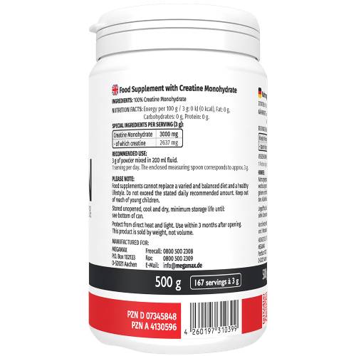 KREATIN MONOHYDRAT 100% Megamax Pulver