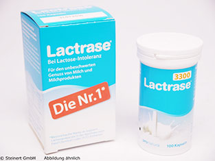 Die Lactrase 3300 Kapseln beinhalten das Enzym, welches in der Lage ist Lactose in seine Bestandteile Galactose und Glucose zu zerteilen. Das Produkt gehört zu den diätischen Lebensmittel, was bei der Milchzuckerintoleranz eingenommen werden sollte. Die Kapseln ersetzen bei der Lactose-Intoleranz die körpereigene Lactase. Galactose ist auch bekannt unter Schleimzucker, Glucose kennt man auch unter Traubenzucker. Die Einnahme des Enzyms soll bei einem Lactosemangel Verdauungsprobleme beheben und so eine problemlose Zunahme von Milchprodukten oder Lebensmitteln mit Milchzucker ermöglichen.