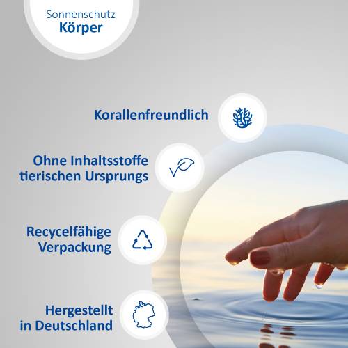 Dank der emulgatorfreien Rezeptur ist die Sonnenschutz-Lotion besonders gut verträglich und sorgt für ein leichtes und angenehmes Hautgefühl. Zudem pflegt sie die Haut und spendet intensiv Feuchtigkeit mit Hyaluronsäure. Die Lotion ist wasserfest und korallenfreundlich, was sie zum idealen Begleiter für den nächsten Urlaub macht. Die Verpackung ist recycelbar (muss nicht getrennt entsorgt werden) und schützt somit nicht nur die Haut, sondern trägt auch zur Nachhaltigkeit bei.