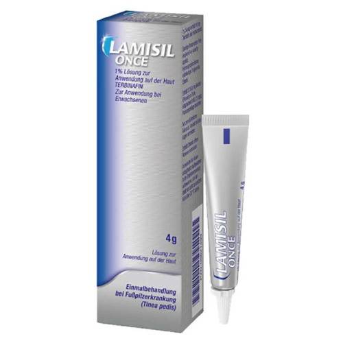 Die Lamisil Once Loesung wird zur Behandlung von Fußpilzerkrankungen angewendet. Die Loesung enthaelt unter anderem den Wirkstoff Terbinafin. Durch das Produkt wird ein Film auf der Haut gebildet, welcher den Wirkstoff nach und nach abgibt. Durch diese Langzeitwirkung reicht in der Regel eine einzige Anwendung aus. Nach zwei bis drei Tagen verschwindet der Film langsam, wobei sich ausreichend Wirkstoff in der Haut angereichert hat. Die Lamisil Once Loesung ist ueber einen Zeitraum von zwei Wochen nach dem Auftragen aktiv und bekaempft den Pilzbefall wirkungsvoll.