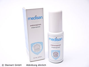 Schwitzen ist gesund, keine Frage. Bei übermäßiger Ausprägung wird es allerdings unangenehm und die Lebensqualität ist deutlich eingeschränkt. Medisan® Antitranspirant beinhaltet einen hochwirksamen ALCL-Komplex. Nach dem Auftragen verhindert Medisan® Plus schonend und zuverlässig die Schweißbildung und lässt damit unangenehme Gerüche oder Schweißflecken gar nicht erst entstehen. Wertvolle Bio-Aktivstoffe sorgen zusätzlich für wirksame Pflege und Schutz der Haut und machen Medisan® Plus damit zu einem der hautverträglichsten Antitranspirante. Das Kosmetikprodukt wird in Deutschland mit modernsten Verfahren hergestellt und unterliegt damit höchsten Qualitäts- und Kontrollstandards.