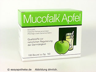 Mucofalk® ist ein rein pflanzliches Stuhlregulans. Es wird angeboten in den Geschmacksrichtungen Apfel und Orange und enthält als Wirkstoff Plantago ovata Samenschalen (Indische Flohsamenschalen).