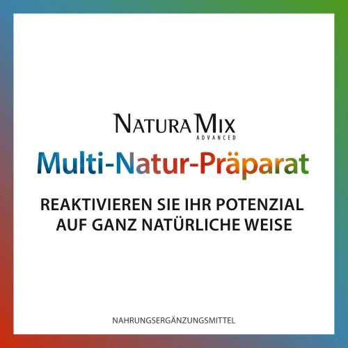 Natura Mix Advanced Energie ist ein zu 100 % natürliches Produkt, dass hilft, die körperliche und geistige Energie zu steigern und trägt dank des Taigawurzel-Extrakts zur adaptogenen Wirkung bei. Ferner hilft Natura Mix Advanced Energie dank der Extrakte aus Ginseng und Guaranà, Ermüdungserscheinungen zu bekämpfen.