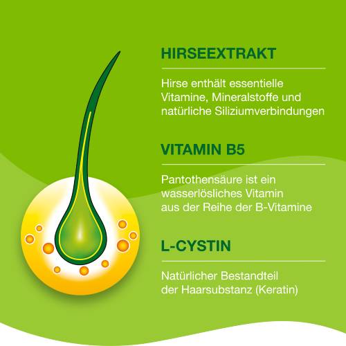 • natürliche 3-fach-Formel aus Hirseextrakt, Vitamin B5 und Cystin nährt die Haarwurzeln von innen