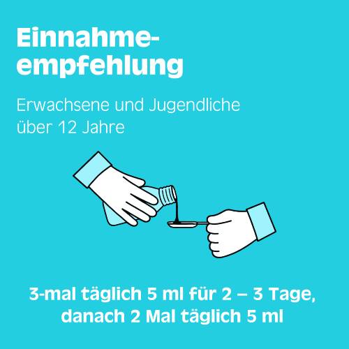 Erwachsene und Jugendliche über 12 Jahre: 3-mal täglich 5 ml für 2 – 3 Tage, danach 2 Mal täglich 5 ml.