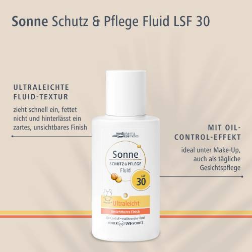 Sonne Schutz&Pflege Fluid mit LSF 30 von medipharma cosmetics: Kombiniert zuverlässigen Sonnenschutz und intensive Feuchtigkeit mit mattem Finish