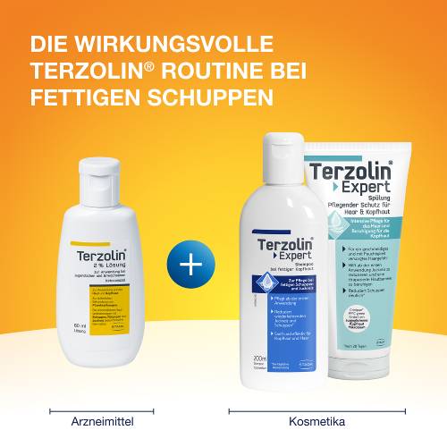 Ja, das Terzolin® Expert Shampoo bei fettiger Kopfhaut kann zur Pflege während der Therapie und auch nach Abschluss der Behandlung mit dem Arzneimittel Terzolin 2% Lösung eingesetzt werden. Das Terzolin® Expert Shampoo bei fettiger Kopfhaut wird hierfür an den Tagen verwendet, an denen keine Haarwäsche mit dem Arzneimittel Terzolin 2% Lösung erfolgt.